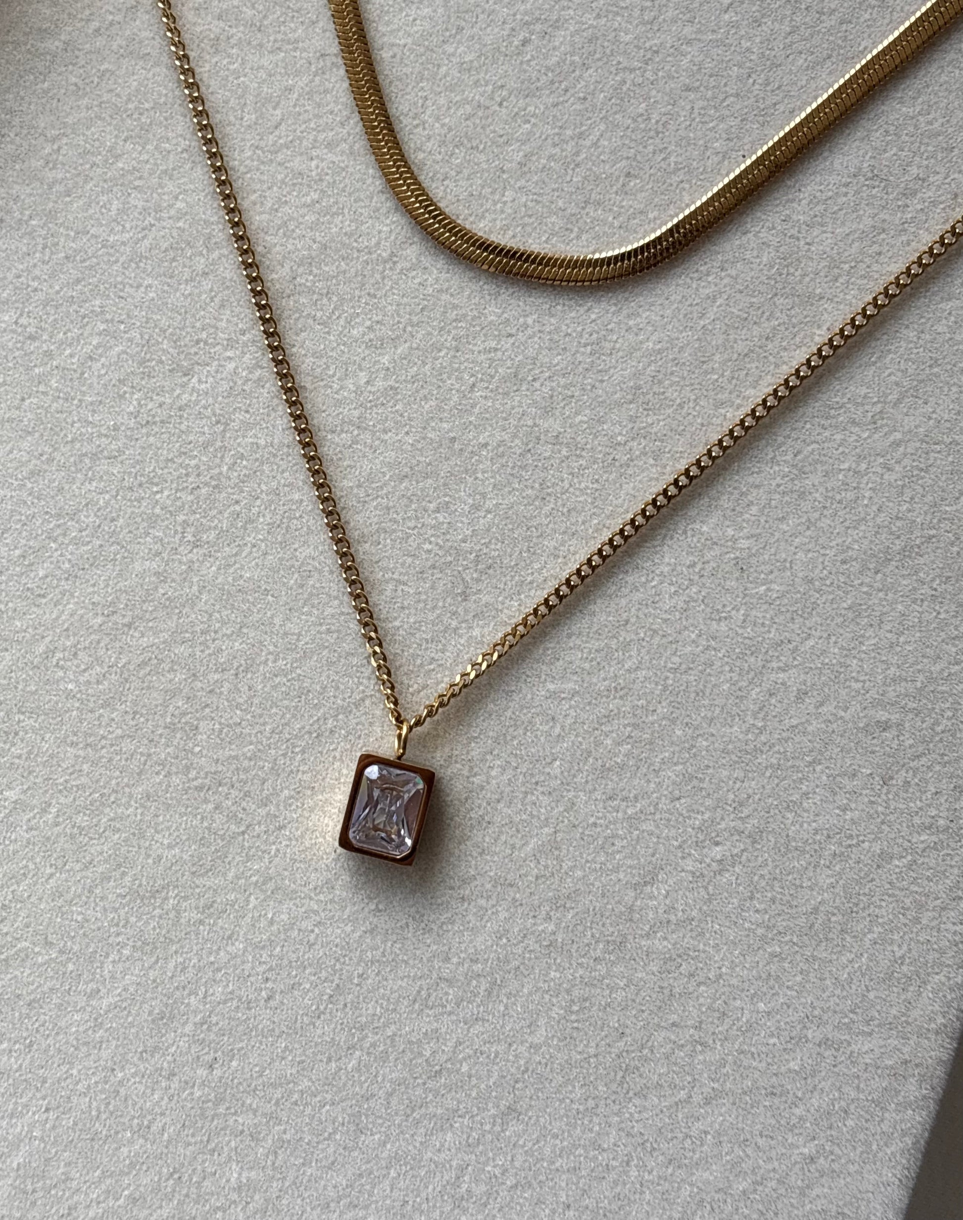 Anti tarnish gold plated white stone layered necklace