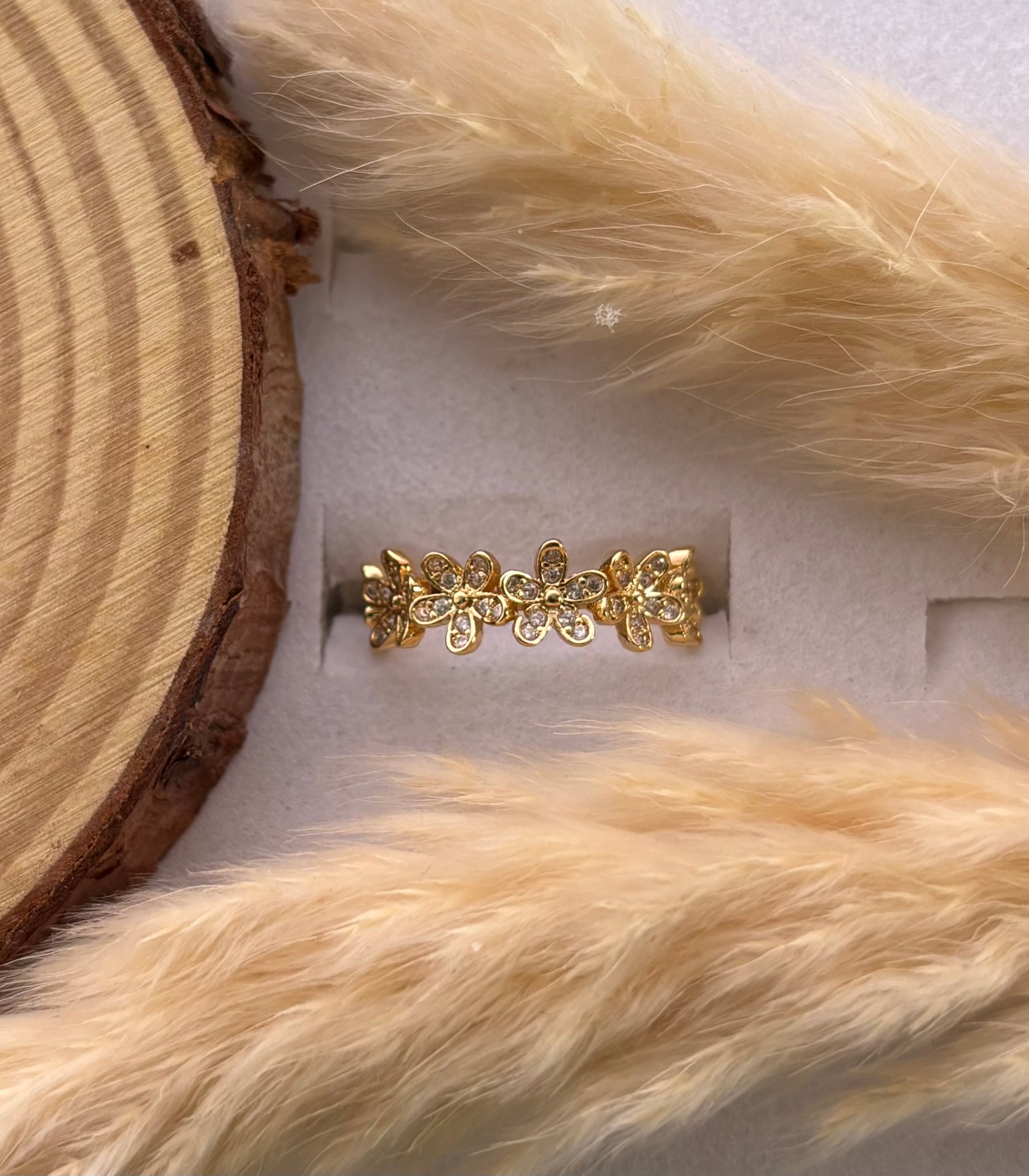 Anti tarnish gold plated adjustable stone ring flower