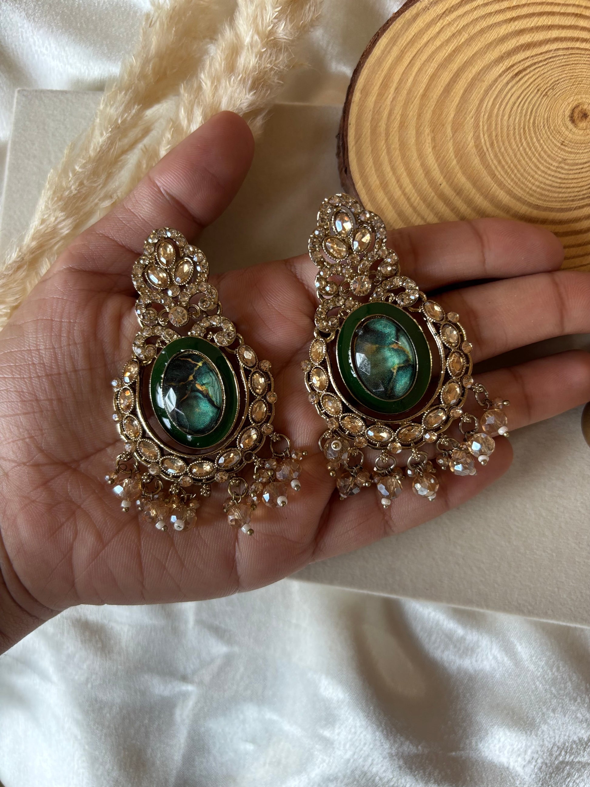 Green and gold premium jumka earrings