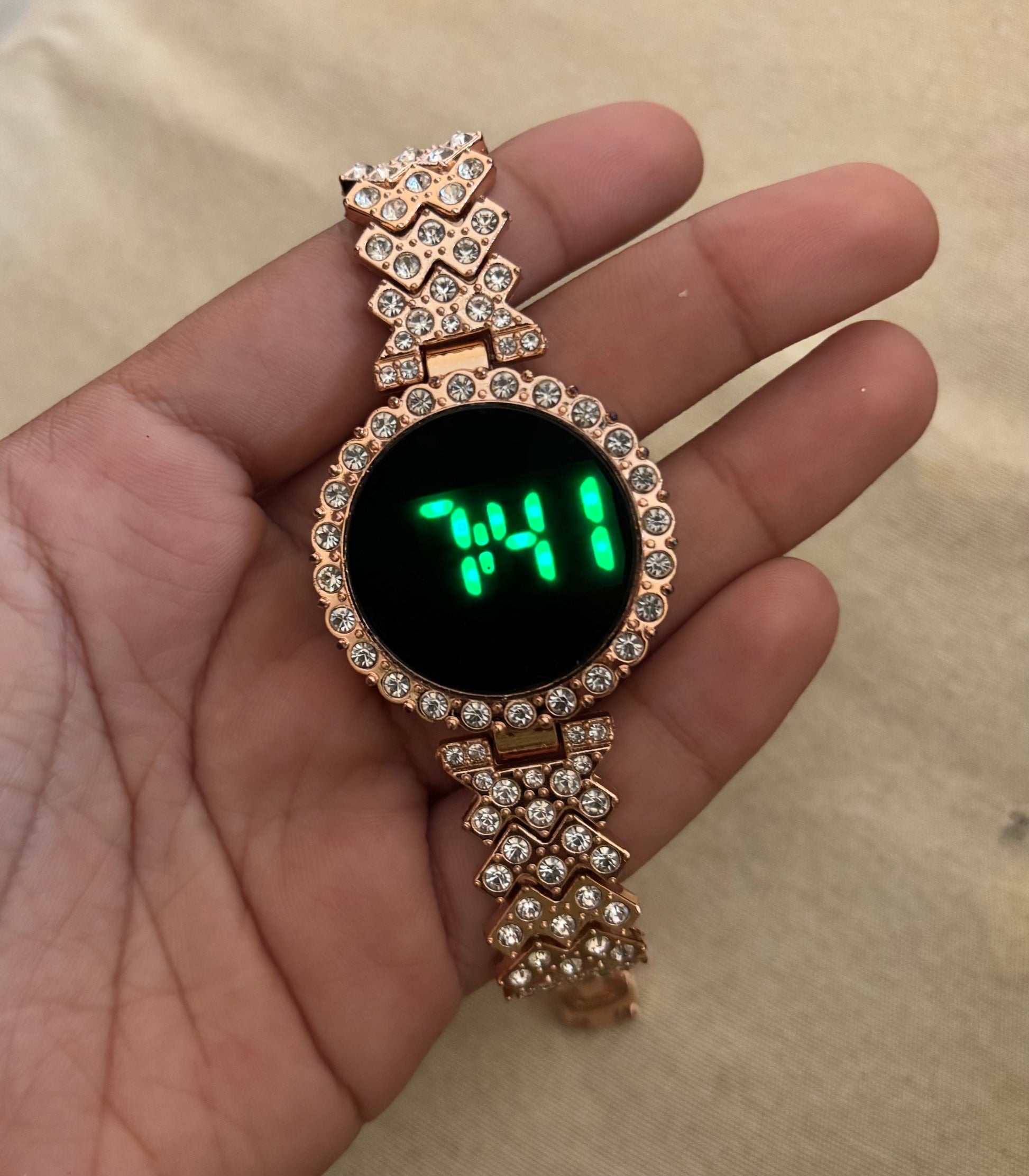 Rose gold round digital watch
